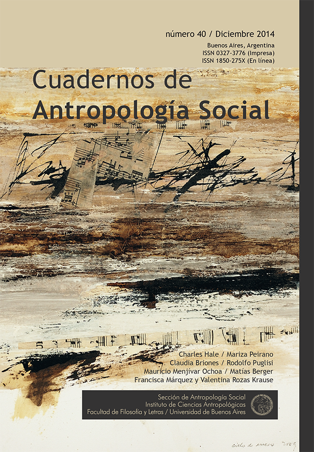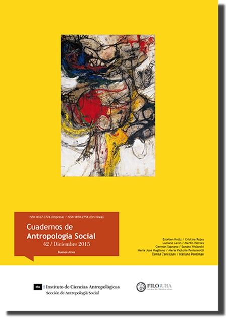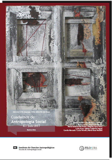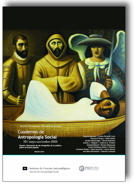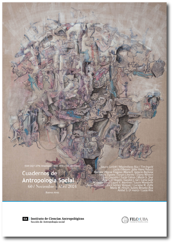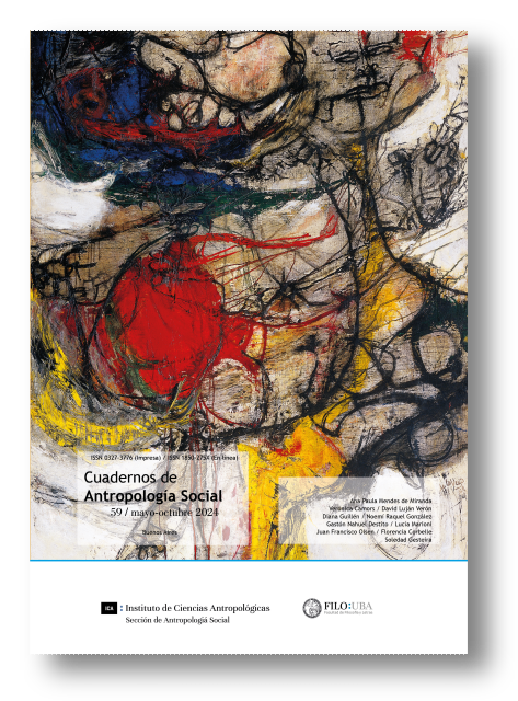 Cuadernos de Antropología Social núm. 57 (mayo-octubre 2023). La ilustración de tapa pertenece al artístas plástico Carlos Sessano, titulada "Figura con gato". Año 2020. Técnica: acrílico, medidas 100 x 81 cm.