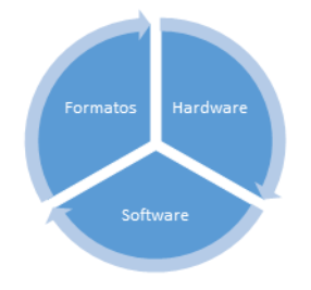 Según Térmens, en el mundo actual toda la información puede ser reducida a un código binario. Todos los datos y los documentos pueden ser digitalizados y gestionados por medios informáticos gracias a un software y hardware específico. Desgraciadamente, ello provoca que el entorno tecnológico, software, hardware y formatos de los ficheros (Imagen 1) tengan una vida limitada2 (Térmens, 2013:15).