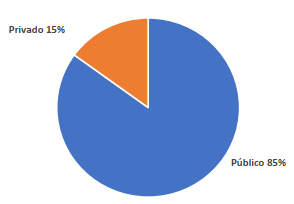 De las instituciones encuestadas, se pudo establecer un 15% (3) como organizaciones privadas, mientras que el 85% (17) correspondió a instituciones públicas de acuerdo a lo que se muestra en la figura 1.