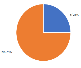 Uno de los aspectos que hacen a la accesibilidad de las instalaciones son las rampas de acceso a la biblioteca. La inclinación y el ancho adecuado de las rampas no fueron precisadas en este estudio, solo si contaban o no con ellas. De las instituciones estudiadas, el 60% no dispone de rampas de acceso y un 40% respondió que sí cuenta con ellas para acceder al edificio. Estos resultados pueden apreciarse en la figura 3. En cuanto a la consulta sobre si dichas rampas cuentan con pasamanos, un 25 % respondió afirmativamente y un 75% indicó que no.