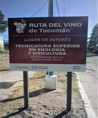 Figura 7. Tucumán, Colalao del Valle. Inclusión de la Tecnicatura en Enología y Viticultura en la cartelería de la Ruta del Vino. Fotografía de la autora.