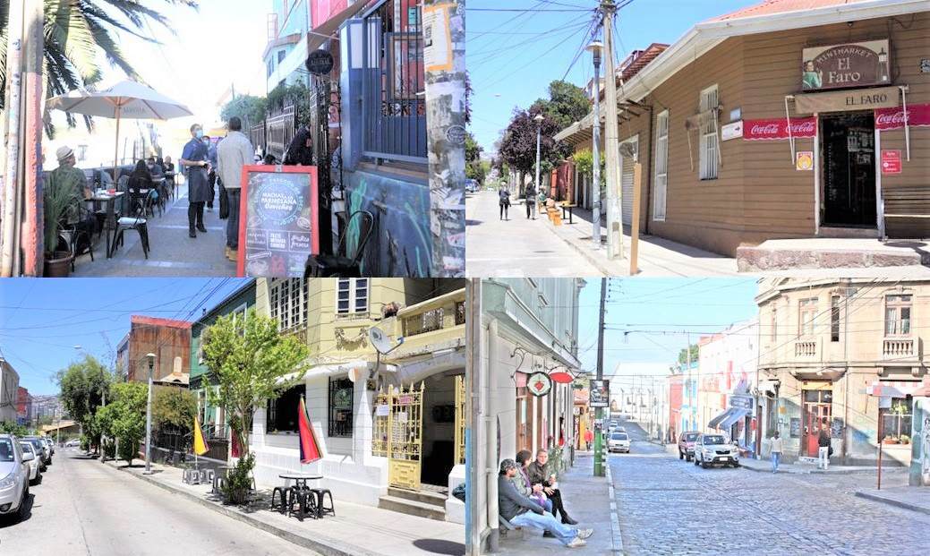 Figura 4. El paisaje urbano turistificado de los cerros Concepción y Alegre es uno de los cambios experimentados a partir de la aplicación de programas y subsidios. Fotografías del autor.