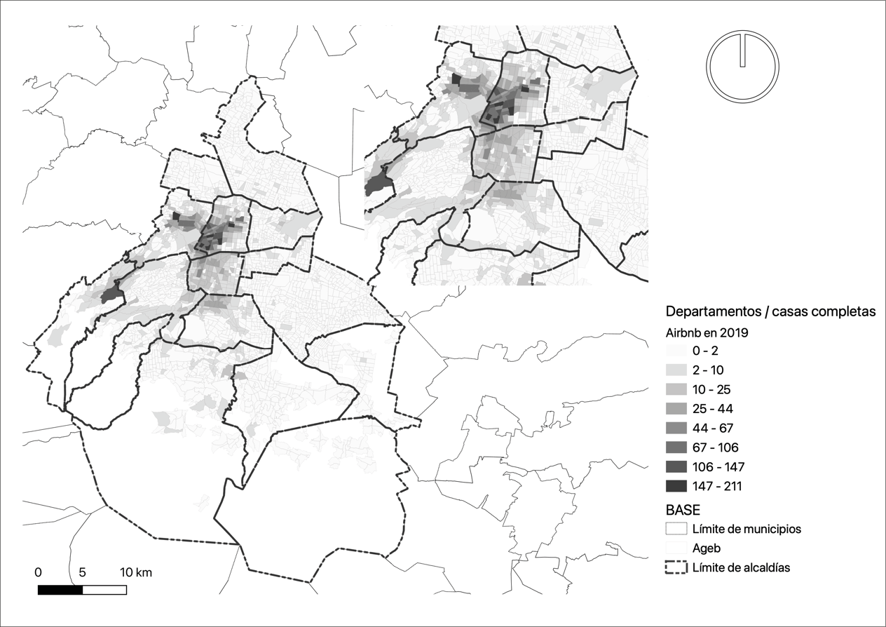 La distribución espacial de la oferta de Airbnb en las zonas centrales y de mayor interés inmobiliario, coincidente con la concentración de la vivienda de alquiler de la capital mexicana, así como su consolidación en dichas áreas, es un indicador que permite refutar la idea de que se trata de vivienda subutilizada, tal como se plantea en el discurso de la sharing economy. Se trata, más bien, de una forma de rentabilizar con mayor ganancia la vivienda bien localizada en la ciudad, aprovechando la infraestructura y el equipamiento existente, así como los servicios ofertados tanto para el turismo como para el trabajo remoto.