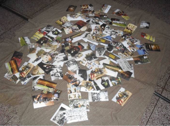 Um lençol foi estendido sobre o chão e, nele, as fotografias foram disponibilizadas, de modo que os docentes pudessem degustar com o olhar, com o toque, com o cheiro (as fotografias podem transmitir também a sensação do cheiro do lugar), lançando o olhar ao devir: “(...) o olhar fotografias e o pensar por meio delas como acontecimentos imbricados nos sentidos previstos e retidos, e nos sentidos que esvaem nos diferentes encontros com as imagens” (Wunder, 2008:71).