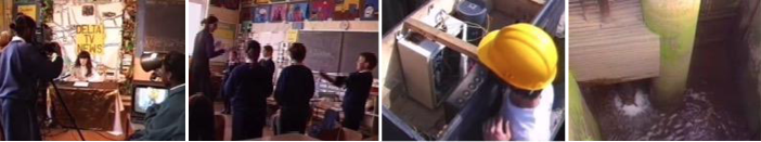 Para que o projeto fosse, de fato, significativo para as crianças, uma série de atividades pedagógicas e artísticas foram desenvolvidas com elas. Caminhadas nas margens do rio, elaboração de pesquisas sobre a história do bairro e a relação que os antigos moradores tinham com o rio, e a produção de mapas, vídeos, desenhos, poesias e performances (Figuras 3 e 4). Dentre outras atividades, cito aqui a instalação de um sino numa antiga eclusa do rio. Quatro vezes ao dia, com o movimento de subida e descida das marés (nível da água), o sino era tocado resultando em uma “performance musical ao ar livre” (Platform, 1993).