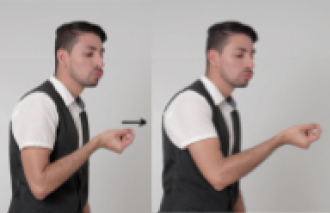Orientación: posterior. Distancia: un año. Movimiento (circular) hacia adelante. A diferencia de la seña de AÑO-PASADO, en AÑO-PRÓXIMO la dirección del movimiento (circular) es hacia adelante. |