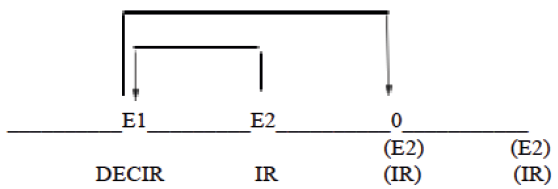 Es decir, el E2 (pagarían) se orienta con relación al E1 (dijeron) —es posterior— y el E1 a su vez se orienta con respecto a 0 —es anterior a este— (sobre las orientaciones indirectas en oraciones complejas en español, ver Rojo y Veiga 1999, 2881).